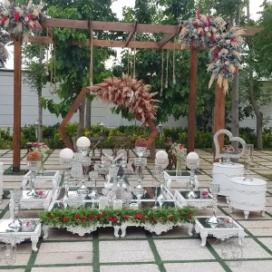 - امکانات: گل آرایی ورودی، سرو انواع فینگرفود، تزئین شیک اتاق عقد، شمع آرایی و گل آرایی، تزئین زیبا و شیک جایگاه عروس و داماد