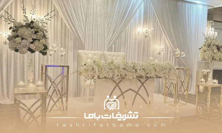 طراحی و دکوراسیون سالن: سالنهای لوکس با گلآرایی حرفهای، نورپردازی ویژه و سفره عقد اختصاصی هزینه بیشتری دارند.